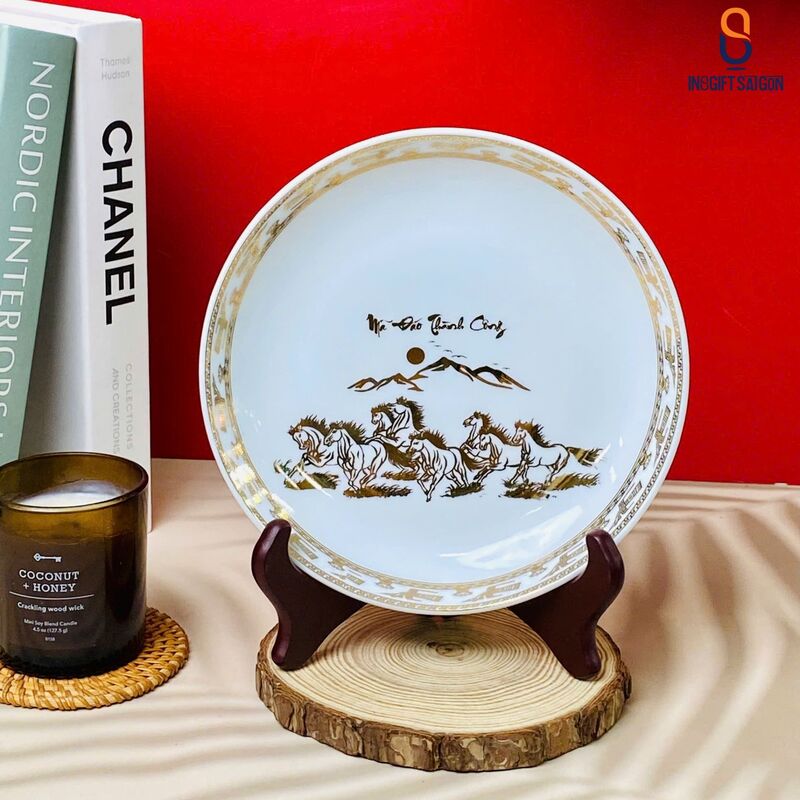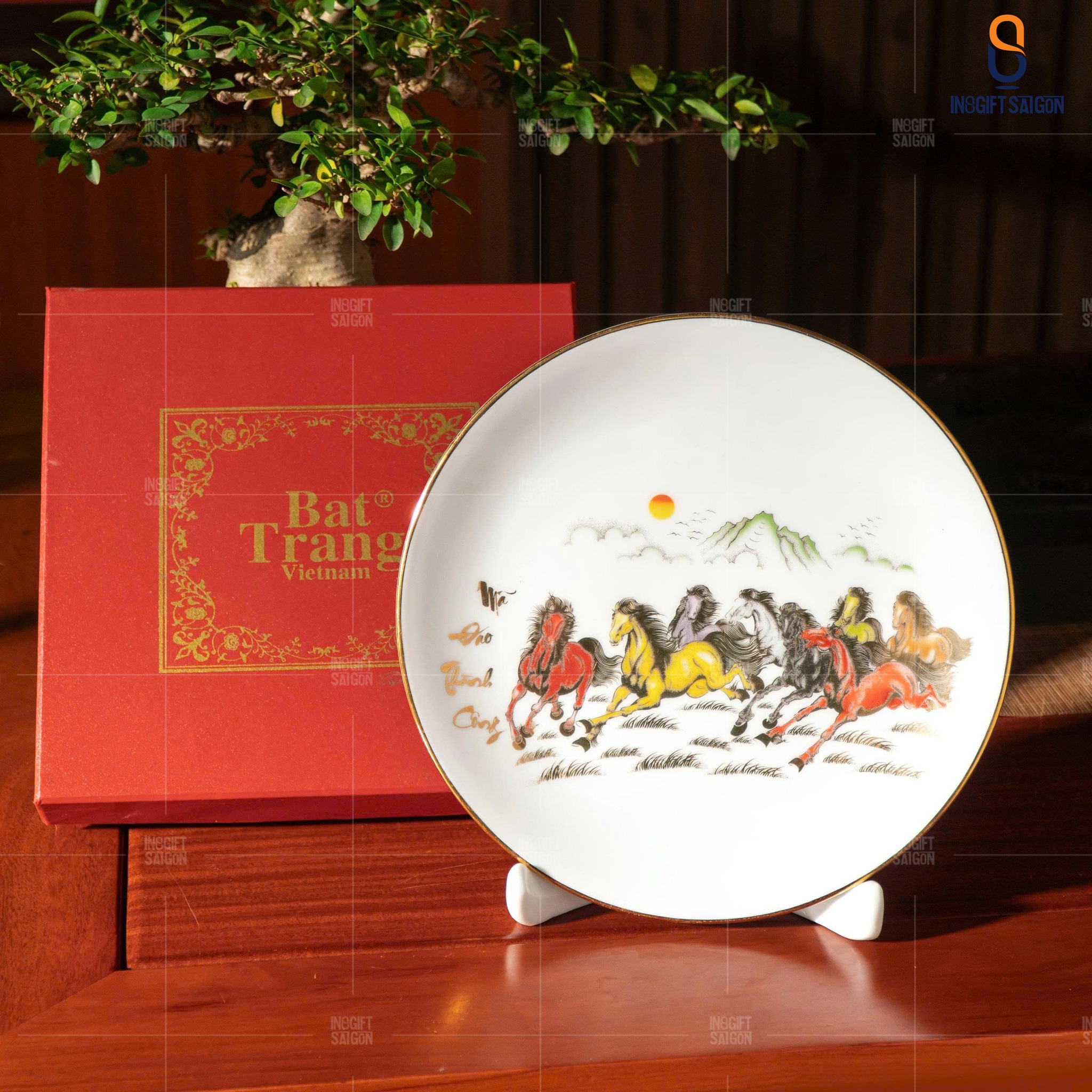 Tìm kiếm món quà tặng linh vật Ngựa mang giá trị biểu trưng và kỷ niệm cho dịp Tết Bính Ngọ, mẫu đĩa biểu trưng chính là sự lựa chọn hoàn hảo cho doanh nghiệp/công ty và các tổ chức đoàn thể. Đây là món quà Tết trang nhã, phù hợp trưng bày trong doanh nghiệp hoặc gia đình, gửi gắm lời chúc năm mới thuận lợi và phát đạt.