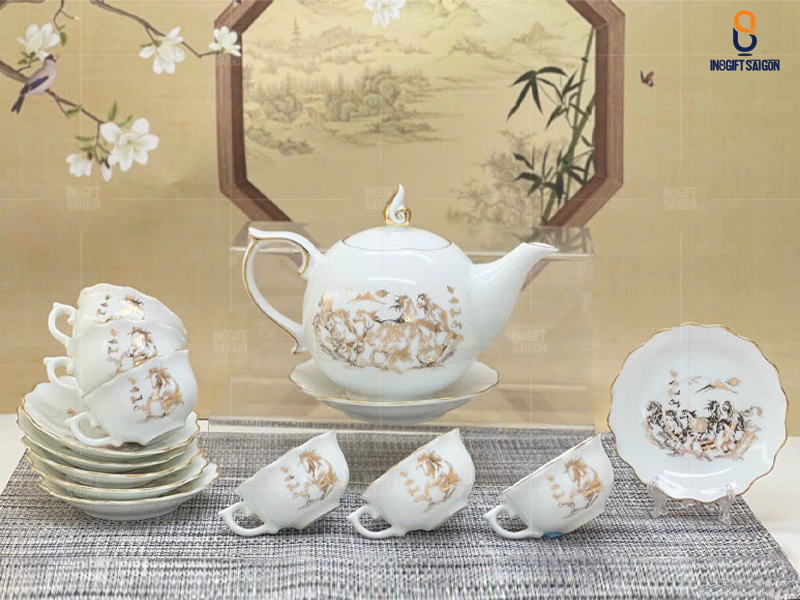 Bộ ấm chén “Mã Đáo Thành Công” là món quà Tết gốm sứ sang trọng, mang biểu tượng Ngựa may mắn của năm Bính Ngọ 2026. Sản phẩm được thiết kế tinh tế với họa tiết kẻ chỉ vàng sang trọng. Món quà tặng vừa mang đến giá trị sử dụng cao, vừa thể gửi gắm lời chúc thăng tiến, may mắn, tài lộc và thành công, phù hợp cho dịp Tết Bính Ngọ.