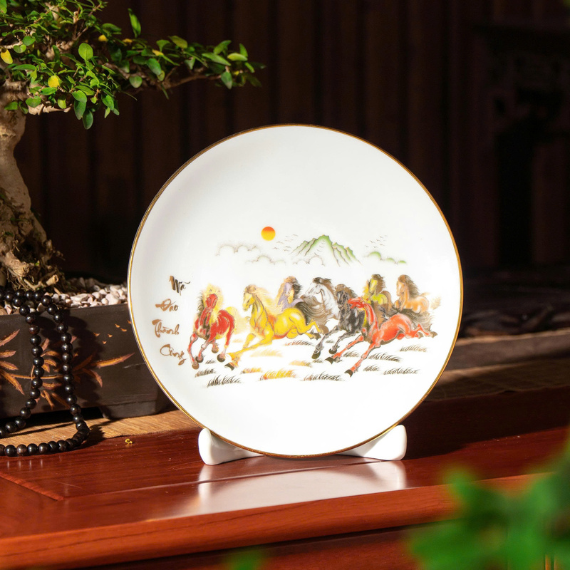 Đĩa biểu trưng là một trong những sự lựa chọn hoàn hảo cho quà tặng kỷ niệm ý nghĩa. Đĩa biểu trưng cho quà tặng Tết Bính Ngọ với họa tiết "Mã đáo thành công" truyền tải thông điệp ý nghĩa về sự thuận lợi và thịnh vương trong năm mới.