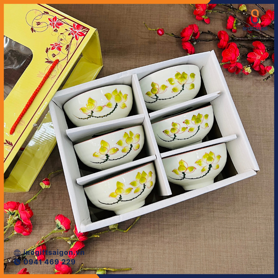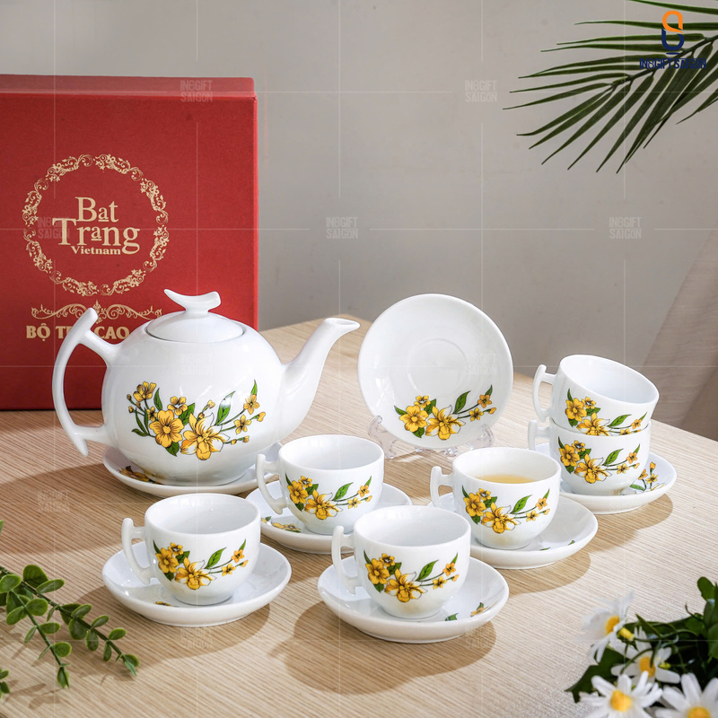Mang nét đặc trưng văn hóa Tết Việt, bộ chén dĩa hoa mai, hoa đào trở thành điểm nhấn độc đáo cho không gian ngày Tết. INOGIFT SÀI GÒN hỗ trợ in ấn logo theo yêu cầu, mang đến mẫu quà tặng mang dấu ấn thương hiệu trong dịp Tết Nguyên Đán.