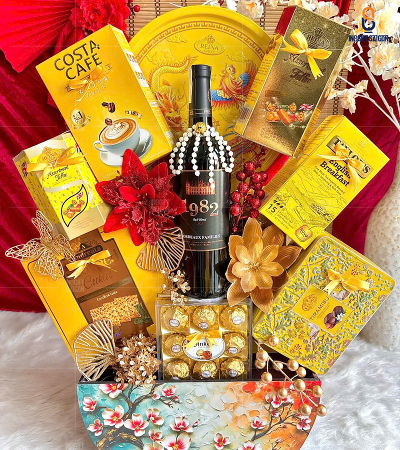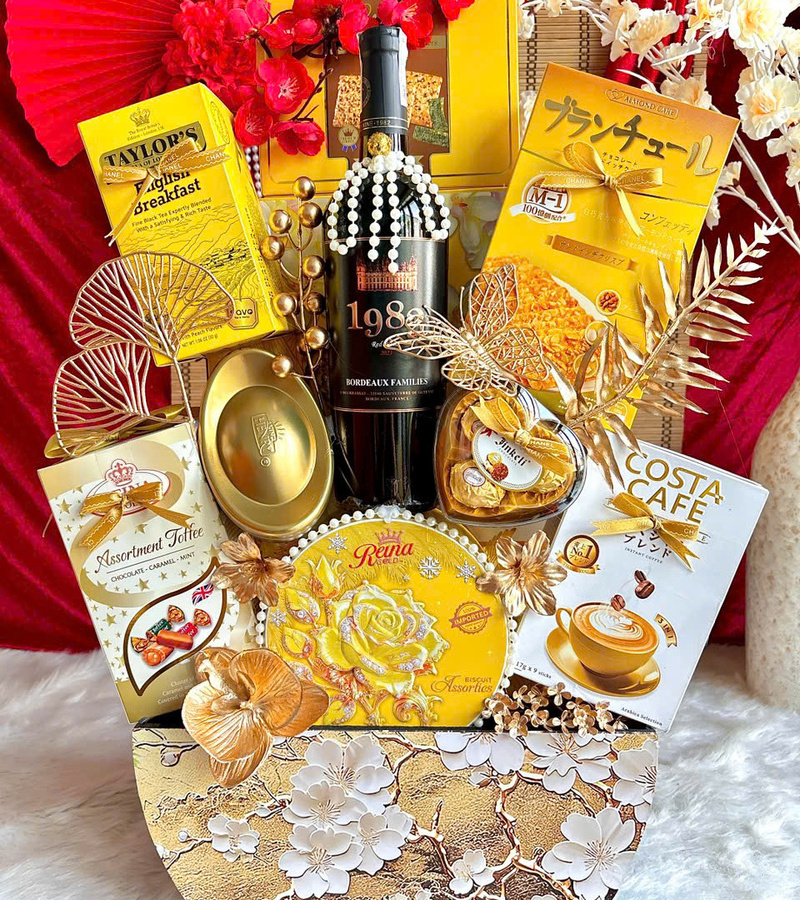 Hướng đến vẻ đẹp tinh tế và sang trọng, giỏ quà Tết màu vàng cao cấp chính là sự lựa chọn tuyệt vời cho quà tặng khách hàng VIP. Với thiết kế tinh tế cùng các sản phẩm quà tặng chọn lọc cao cấp, giỏ quà Tết màu vàng mang đến sự sang trọng là điểm nhấn nổi bật cho không gian ngày Tết. Song song đó, giỏ quà Tết còn gửi gắm lời chúc phát tài - thịnh vượng - may mắn đến với người nhận.