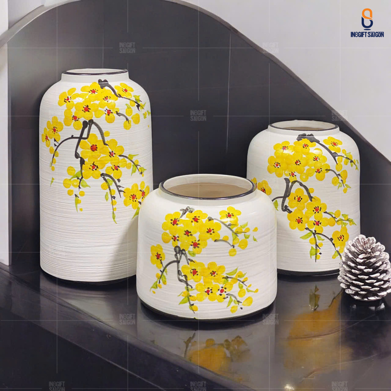 Mang ý nghĩa về sự tươi mới, sáng tạo, mẫu lọ hoa Bát Tràng vẽ họa tiết được xem là sự lựa chọn hoan hảo cho quà tặng Tết. Không chỉ là quà tặng, mỗi lọ hoa Bát Tràng vẽ họa tiết tại INOGIFT SÀI GÒN mang đến giải pháp quà tặng trọn gói. Xưởng sản xuất trực tiếp với đa dạng kiểu dáng, thiết kế và in/khắc nội dung theo yêu cầu. Đảm bảo quà tặng đóng chói chỉn chu, chuyên nghiệp, tạo ấn tượng với người nhận dịp đầu năm.