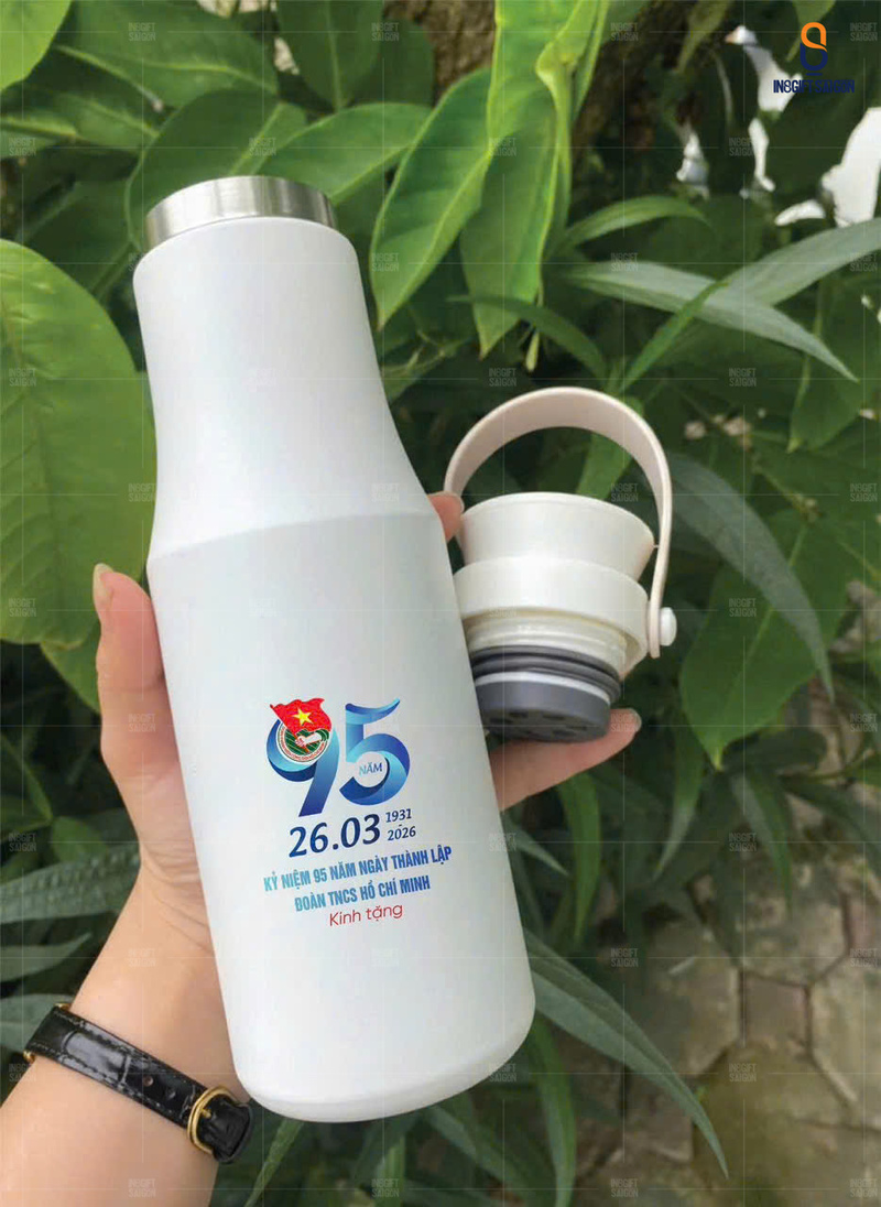 Bình/ly giữ nhiệt khắc logo là món quà tặng thiết thực, gắn liền với nhịp sống năng động của cán bộ Đoàn, hội viên. Sản phẩm được thiết kế hiện đại, chất lượng, giúp giữ nhiệt tối ưu cho mọi hoạt động. Với bề mặt dễ dàng in ấn logo 95 năm thành lập Đoàn sắc nét, đây không chỉ là vật dụng cá nhân hữu ích mà còn là sứ giả lan tỏa niềm tự hào và tinh thần thanh niên rực cháy.