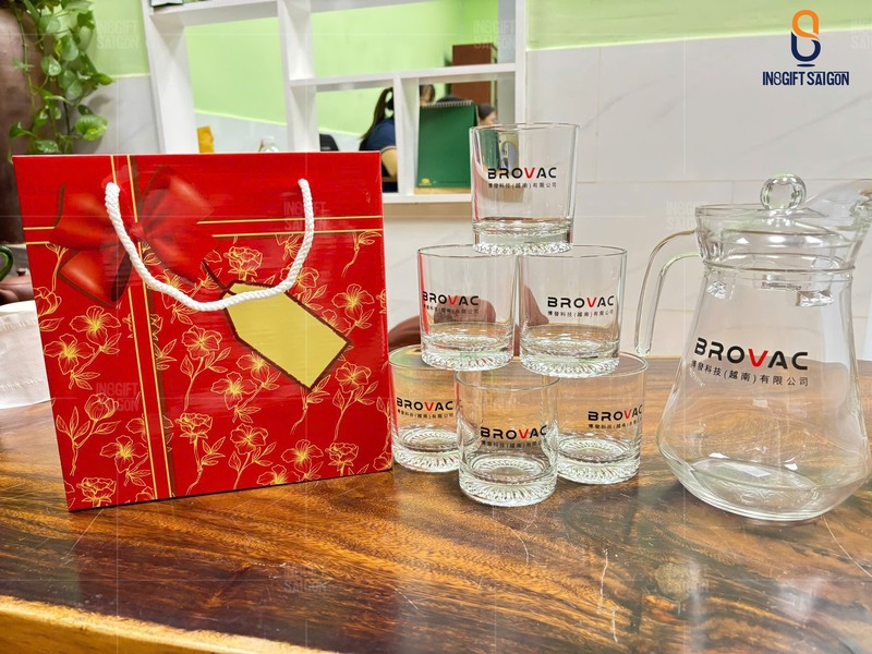8. Bộ bình ly/ bộ 6 ly thủy tinh in logo