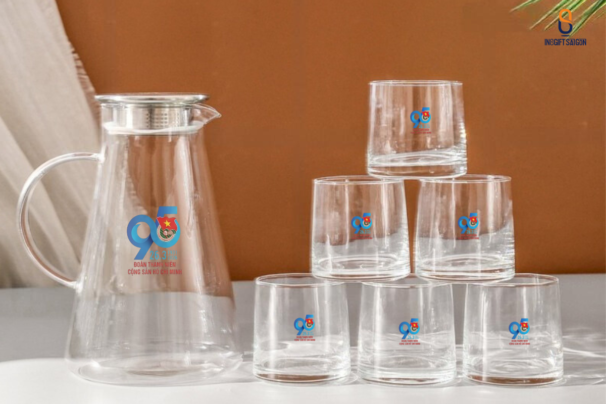 Sử dụng chất liệu thủy tinh cao cấp, trong suốt và chịu nhiệt tốt, bộ quà tặng này toát lên vẻ trang nhã và lịch sự. Chất liệu thủy tinh trong suốt làm nổi bật logo 95 năm thành lập Đoàn tinh xảo. Quà tặng như là cách khẳng định sự hiện diện tự hào của tổ chức Đoàn trong đời sống thường nhật.