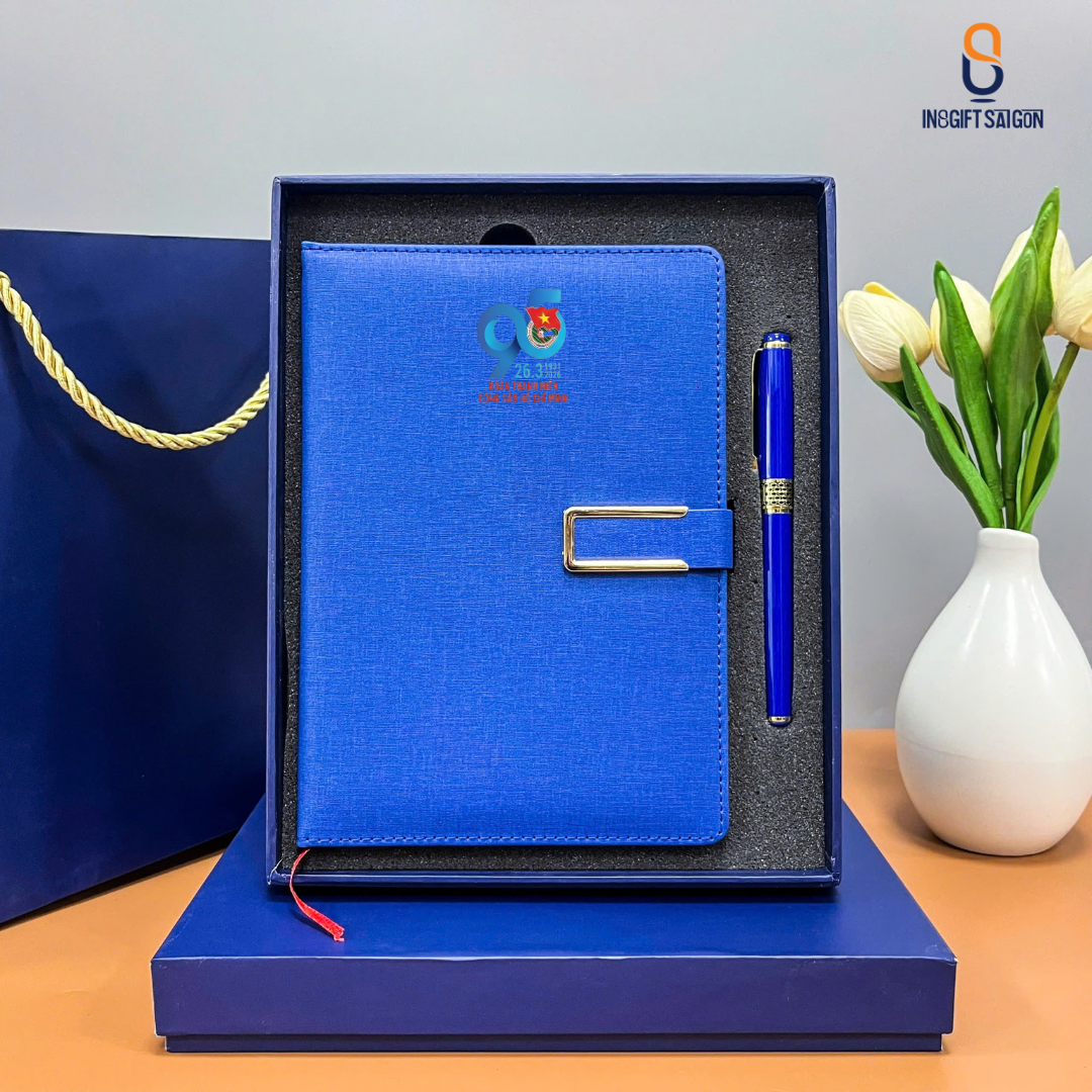 Một bộ quà tặng tiêu chuẩn thường bao gồm các vật phẩm thiết thực như bình giữ nhiệt, sổ tay và bút ký được đồng bộ hóa về màu sắc và phong cách thiết kế. Sản phẩm được in ấn, đóng gói chuyên nghiệp, cao cấp. Thể hiện sự chỉn chu và trân trọng đối với cán bộ đoàn viên nhân dịp lễ trọng đại.