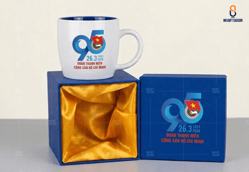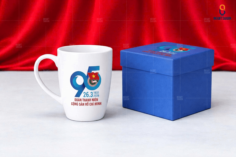 Ly sứ in logo kỷ niệm 95 năm kỷ niệm thành lập Đoàn TNCS Hồ Chí Minh vừa thiết thực vừa tiết kiệm ngân sách. Sản phẩm dễ dàng in ấn logo theo yêu cầu, sắc nét, bền màu. Đặc biệt, mỗi món quà tặng được đều được chọn lựa tinh tế với giải pháp trọn gói. Hộp đựng chỉn chu, tạo nên mẫu quà tặng chuyên nghiệp cho Đoàn viên.