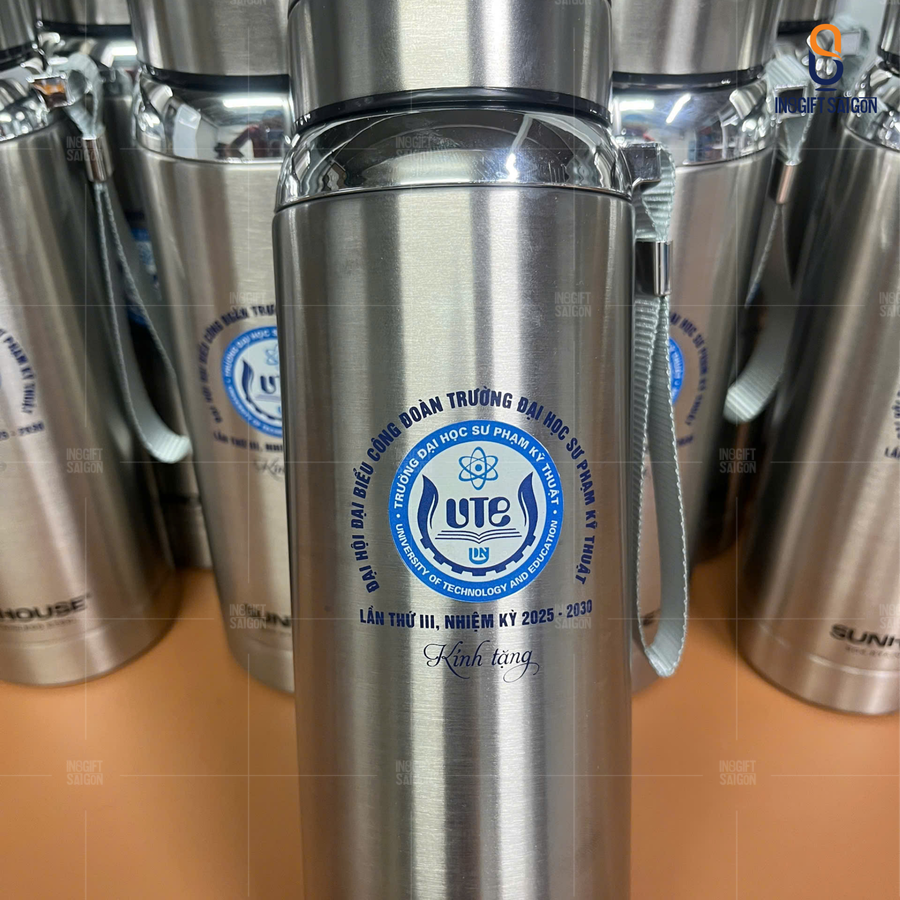 Quà tặng bình giữ nhiệt chính hãng Sunhouse in logo Đại hội Đại biểu Công đoàn Trường Đại học Sư phạm Kỹ thuật.