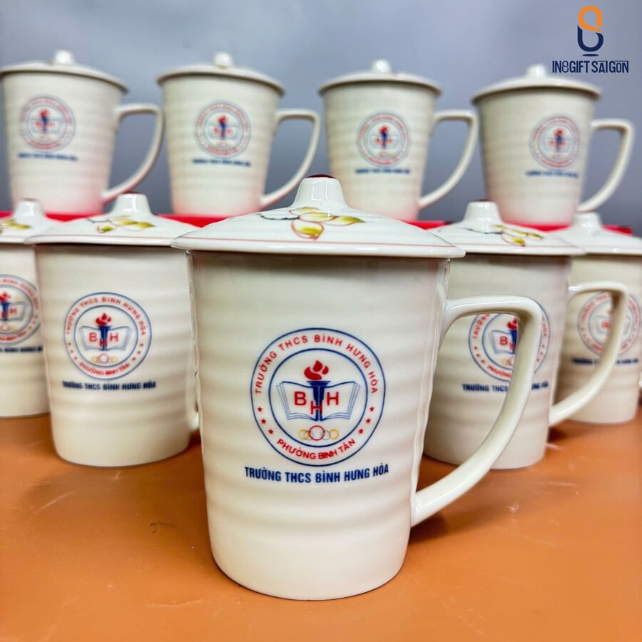 Mang trong mình vẻ đẹp trang nhã, mẫu ly cốc sứ quà tặng in logo trường THCS Bình Hưng Hòa trở thành sự lựa chọn hoàn hảo. Mẫu ly được lựa chọn nhờ phong cách tinh tế với men kem mịn kết hợp cùng họa tiết hoa sen thanh nhã. Mang đến tổng thể hài hòa, sang trọng. Đây không chỉ là vật dụng phục vụ nhu cầu hằng ngày. Mà còn thể hiện sự trân quý, gửi gắm thông điệp ý nghĩa từ nhà trường đến người nhận, tạo nên sự gắn kết nội bộ.