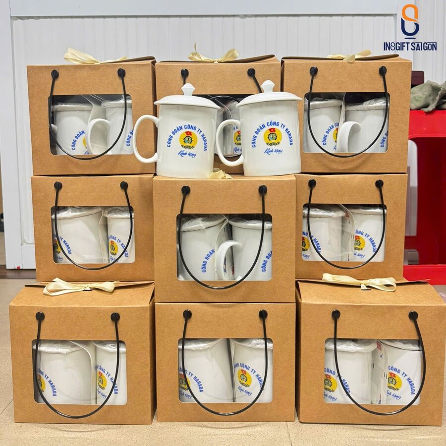 Ly giữ sứ quai C in logo có nắp là lựa chọn quà tặng lý tưởng được Công đoàn công ty ưu tiên dành tặng nhân viên trong các dịp sự kiện. Thiết kế quai cầm chắc tay, nắp đậy an toàn giúp tăng trải nghiệm khi thưởng thức đồ uống. Đây không chỉ là vật phẩm tiện dụng mà còn thể hiện dấu ấn nhận diện tinh tế của doanh nghiệp.