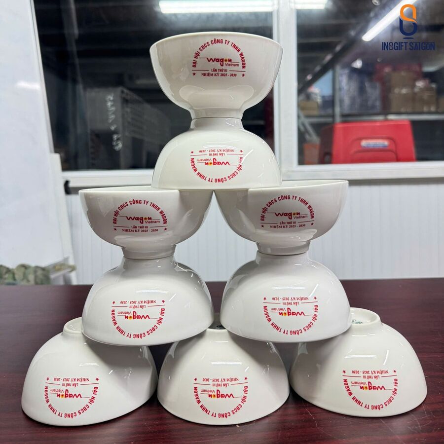 Tìm kiếm món quà tặng thiết thực, ý nghĩa cho quà tặng Công đoàn, quý khách hàng không thể bỏ quà mẫu quà tặng bộ 10 chén cơm sứ trắng in logo. Với chất liệu sứ cao cấp, gam màu trắng thanh khiết cùng thiết kế tối giản, bộ chén mang đẹp tinh tế, trang trọng. Tại INOGIFT SÀI GÒN, bộ 10 chén cơm sứ trăng không chỉ là món quà tặng thông thường. Mà đây còn là món quà tặng mang đậm dấu ấn sự kiện thông qua việc in ấn logo Đại hội. Một món quà tặng chất lượng và ý nghĩa chính là sự lựa chọn hoàn hảo mà Công đoàn Công Ty WAGON chọn lựa.
