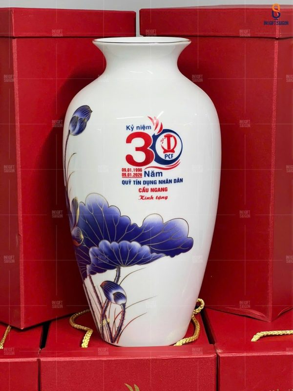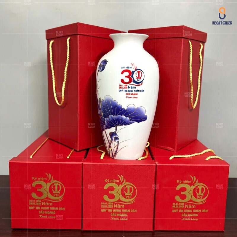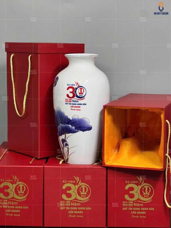 Hành trình 30 năm xây dựng và phát triển là một minh chứng cho sự uy tín và bền bỉ của Quỹ tín dụng nhân dân Cầu Ngang. Để đánh dấu cột mốc kim cương này, INOGIFT SÀI GÒN vinh dự được chọn là đơn vị chế tác quà tặng kỷ niệm 30 năm thành lập với sản phẩm lọ hoa gốm sứ thiết kế riêng. Mỗi sản phẩm trao đi không chỉ là một món quà. Mà là kỷ niệm ghi dấu sự thành công, mang theo niềm tự hào và sự tri ân sâu sắc.