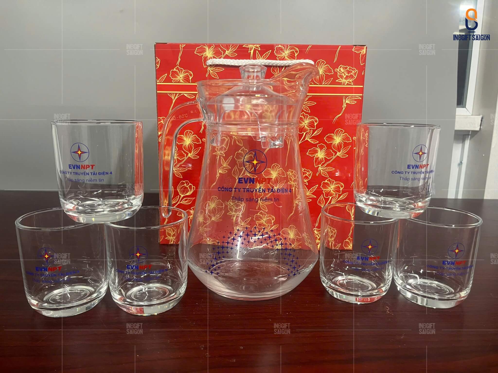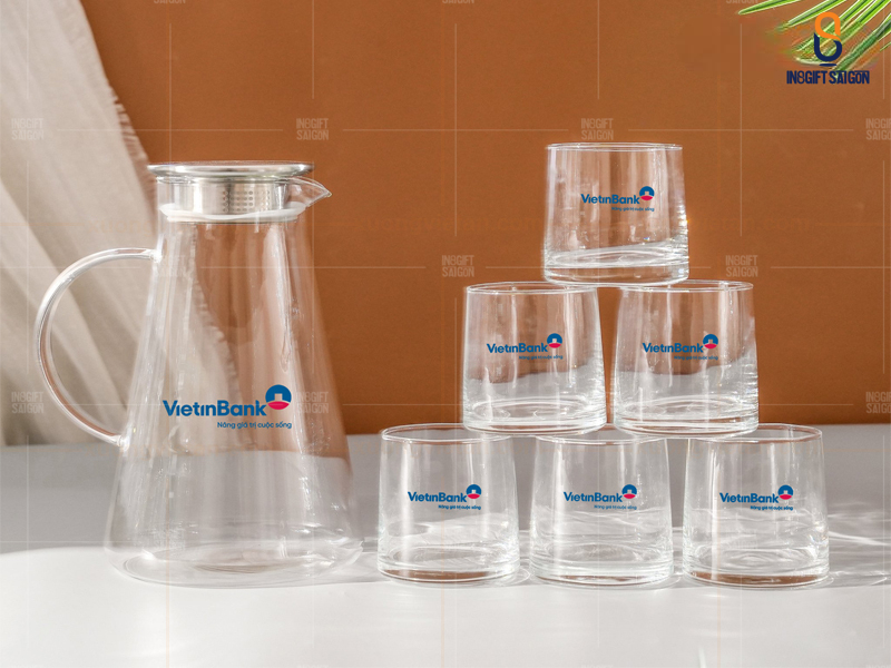 6. Bộ bình ly thủy tinh in logo