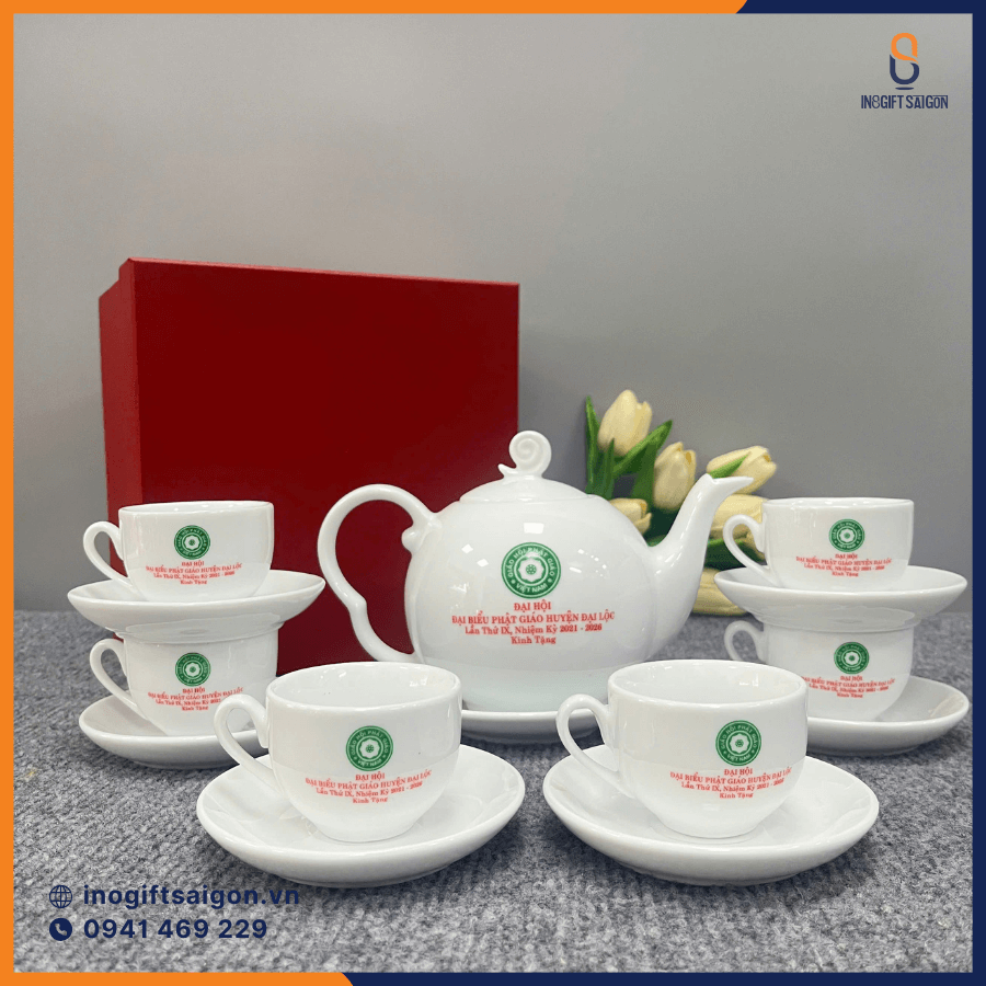6. Bộ trà in logo: Quà tặng Đại hội Công Đoàn