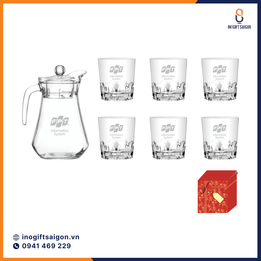 Bộ bình ly thủy tinh in logo không chỉ là vật dụng thiết thực trong đời sống mà còn là "Đại sứ" kết nối thương hiệu với khách hàng. Với chất lượng thủy tinh cao cấp cùng dịch vụ in ấn trọn gói chuyên nghiệp. INOGIFT SÀI GÒN mang đến những giải pháp quà tặng tối ưu nhất cho ngân sách quà tặng.