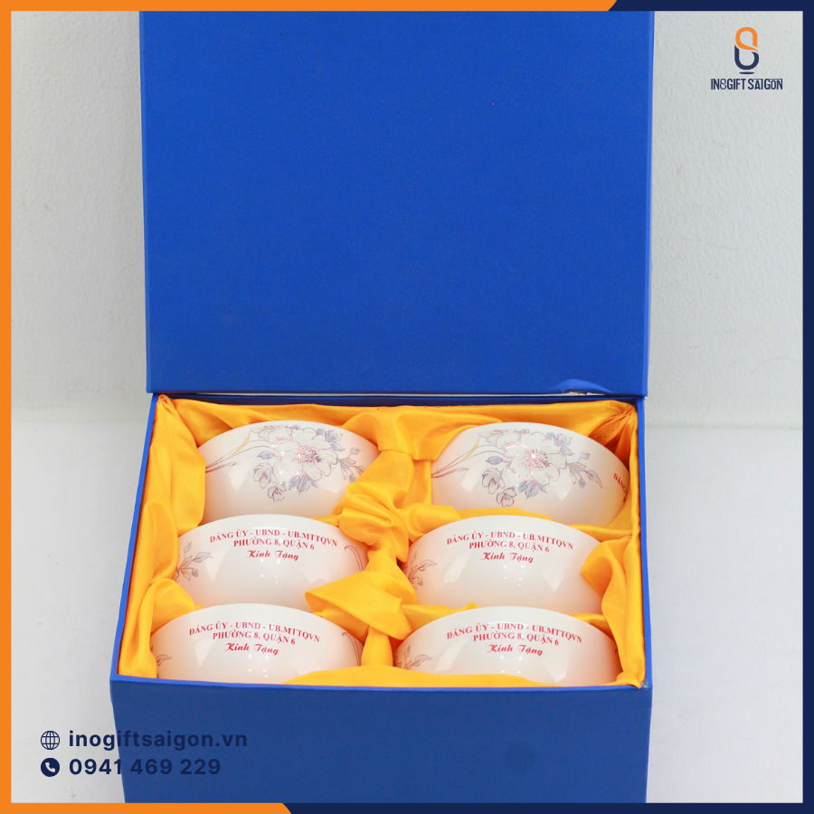 Quà tặng bộ chén ăn cơm được xem là sản phẩm phổ biến đối với hầu hết mọi người. Sở hữu bộ chén chất lượng vừa giúp bảo vệ sức khỏe Một chiếc chén ăn cơm đẹp và chắc chắn là vật dụng không thể thiếu trong mỗi gia đình, giúp bữa cơm trở nên ngon miệng hơn. Chính vì vậy, bộ 6 chén ăn cơm sứ trắng vẽ hoa in logo theo yêu cầu sẽ là món quà ý nghĩa mà doanh nghiệp có thể dành tặng cho khách hàng và nhân viên. Đây cũng là một hình thức quảng bá thương hiệu độc đáo trong cuộc sống hàng ngày, góp phần tạo dựng hình ảnh chuyên nghiệp cho công ty.