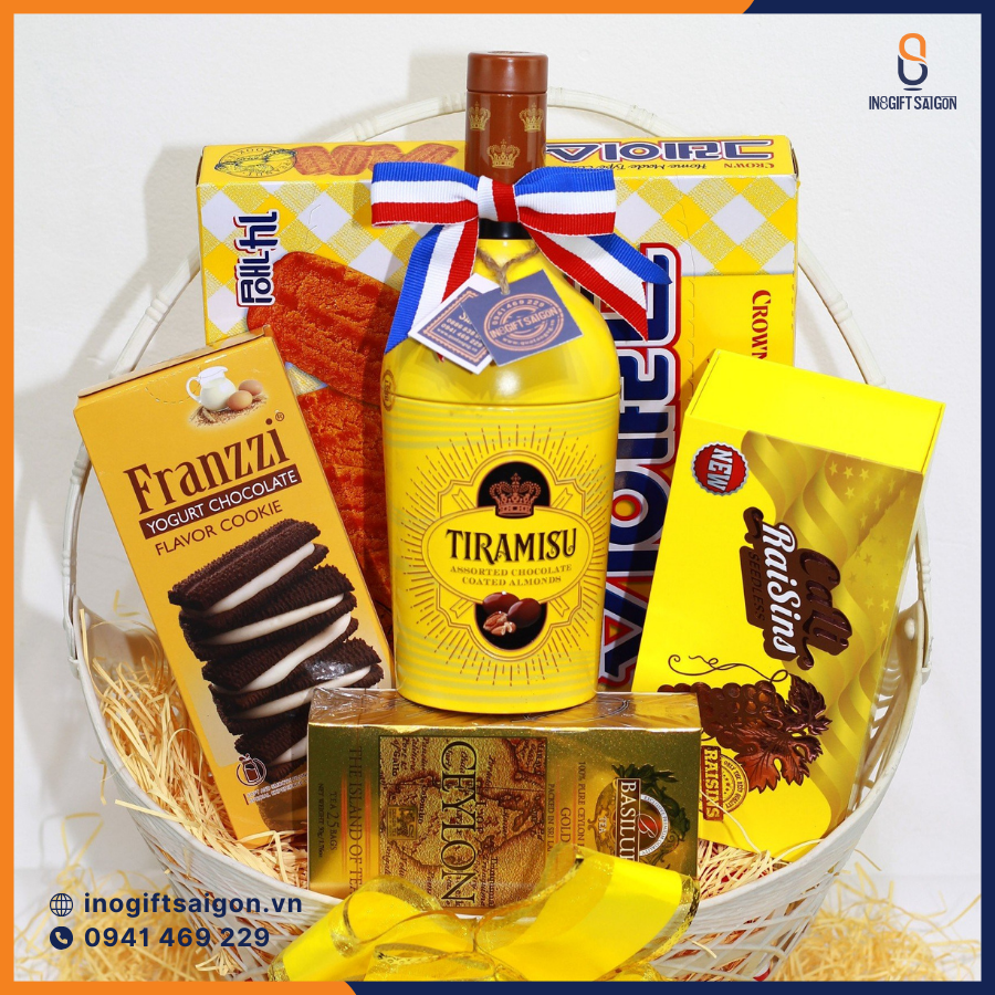 Giỏ quà Tết tiêu chuẩn bao gồm: