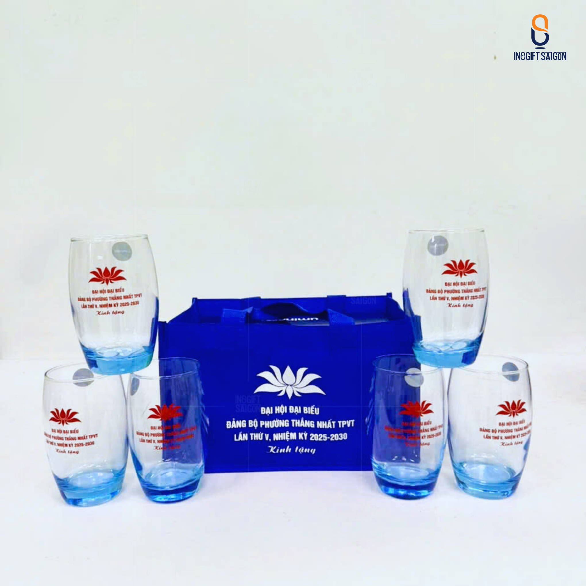 Bộ ly thủy tinh in logo trọn gói là giải pháp quà tặng doanh nghiệp được nhiều đơn vị lựa chọn. Vừa đảm bảo tính chuyên nghiệp, vừa dễ dàng chuyển khai đồng bộ với số lượng lớn. Sản phẩm phù hợp với nhiều sự kiện như: Quà tặng 8-3 cho nhân viên, quà tặng sinh nhật, quà tặng tri ân khách hàng, quà tặng Đại hội,...