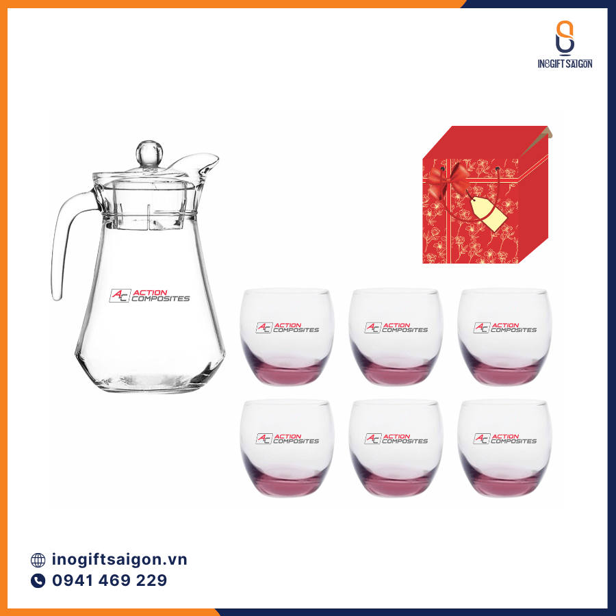 Bộ bình 4 ly thủy tinh Luminarc: Quà tặng doanh nghiệp in logo