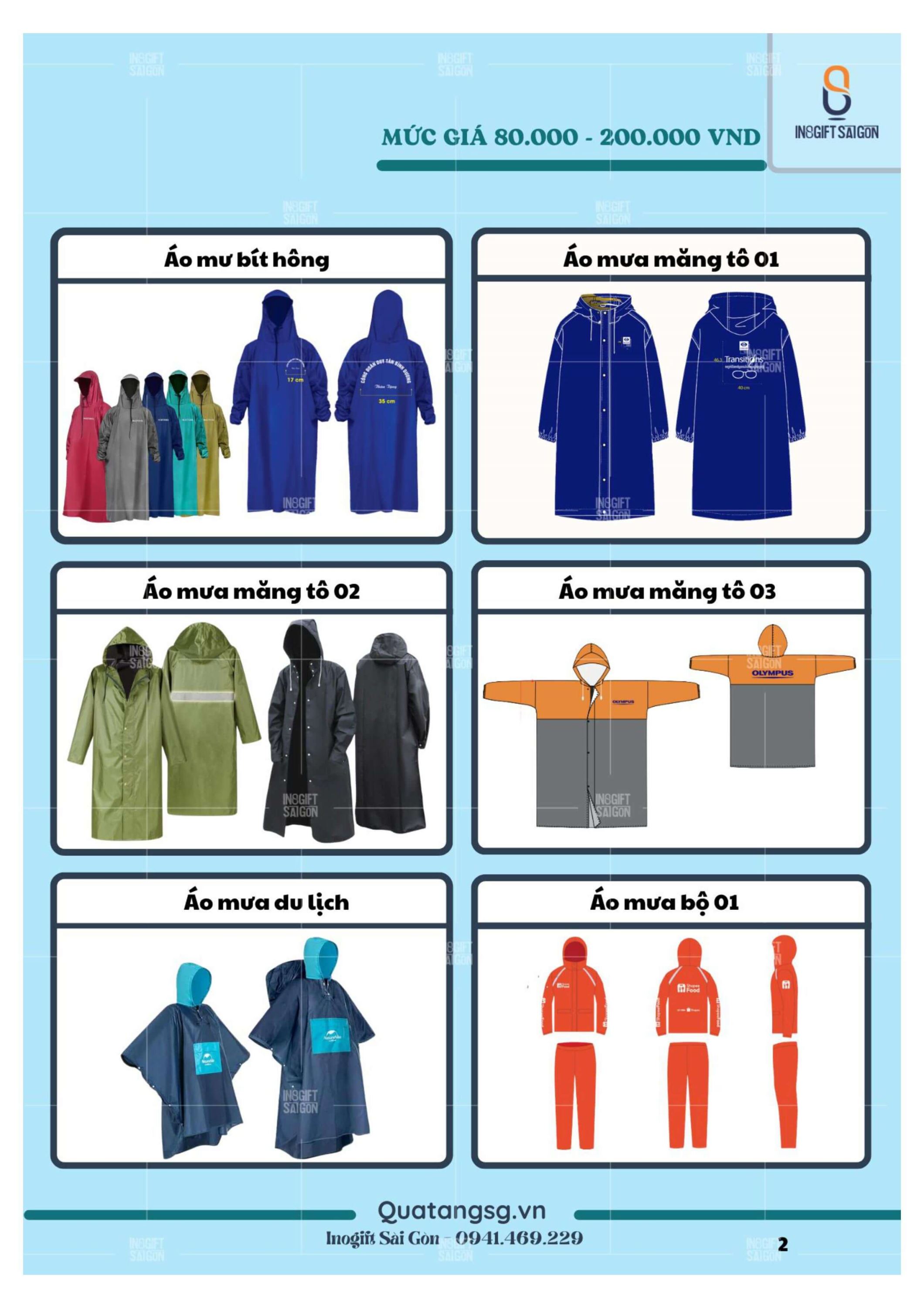 Các loại áo mưa in logo phổ biến tại INOGIFT SÀI GÒN
