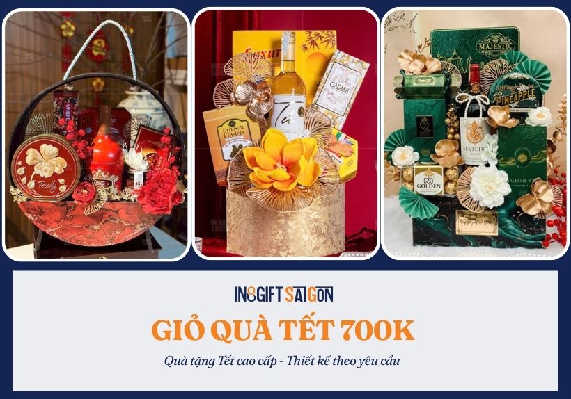 Với mức giá hợp lý, thiết kế sang trọng và ý nghĩa, giỏ quà Tết 700k mang đến sự hài hòa giữa chất lượng và thẩm mỹ. Trao gửi thông điệp tri ân chân thành, gắn kết và chuyên nghiệp cho dịp đầu Xuân. Liên hệ ngay INOGIFT SÀI GÒN để được tư vấn và hỗ trợ thiết kế giỏ quà Tết phù hợp với nhu cầu và ngân sách quà tặng.