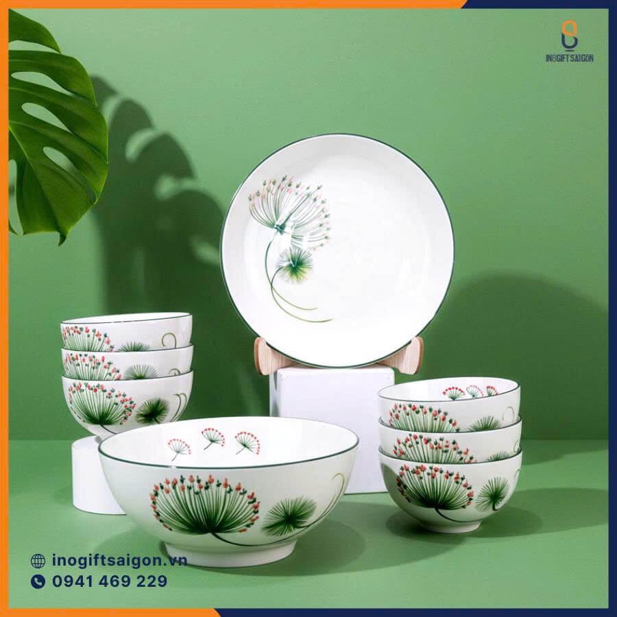 Bộ bàn ăn Bát Tràng họa tiết Bồ Công Anh